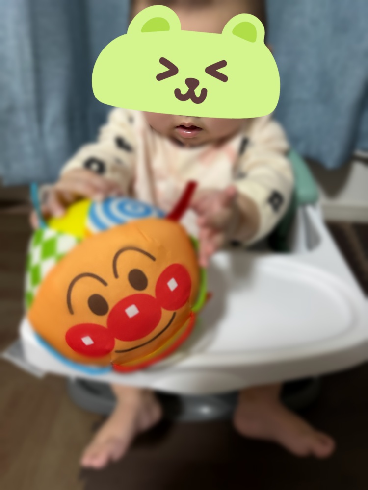 最近のお気に入りはアンパンマンのボールで、音が鳴るのが好きで、振り回したり、投げたり、ワンパクに遊んでいます。